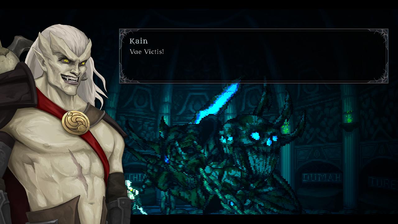This stage plays out in the same way many modern video games do. You'll be taught how to parry, which is a bit of a waste considering enemies don't live long enough for you to use it. You'll be taught how to suck blood and so on. If you don't find this opening segment to be particularly exciting then you're going to be disappointed, because gameplay doesn't get any deeper. There are no upgrades of any kind, no progression systems...nothing. You'll spend the majority of your time jumping over lit torches or spamming the action button to flap your wings over more fiery obstacles. Enemies are stupidly easy to dispatch and they have pretty poor AI; I lost count of the times when they'd wander off a ledge or simply just stand there waiting to be attacked. Level design is uninspired and lacks any sort of discovery. The bosses are timid and rather bland and they represent very little challenge. Pretty much every boss can be beaten by spamming the jumping special attack. If that fails, then you can abuse the dodge which has a ridiculous amount of invincibility frames. If I wanted to be brutal, I would compare the quality of gameplay to that of a beginner's Godot or Unity game. I'm not sure if the developers were overly confident that their gameplay was any good. This is highlighted by way too many checkpoints. You'll often get through a really irritating platforming segment that lasts less than a minute, only to be given a checkpoint - Rinse and repeat for most of the level. You'll get to play as Raziel and Kain in addition to newbie Elaleth, but neither are particularly fun to play, unfortunately. The voice actors for Raziel and Kain return, which is one of the few positives alongside some decent sound design.
